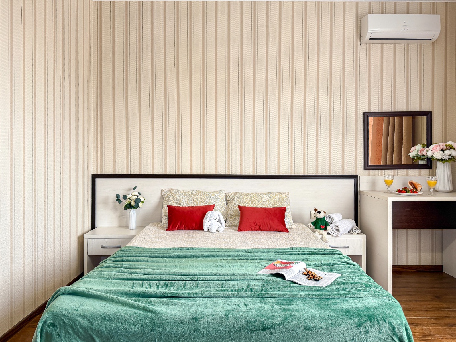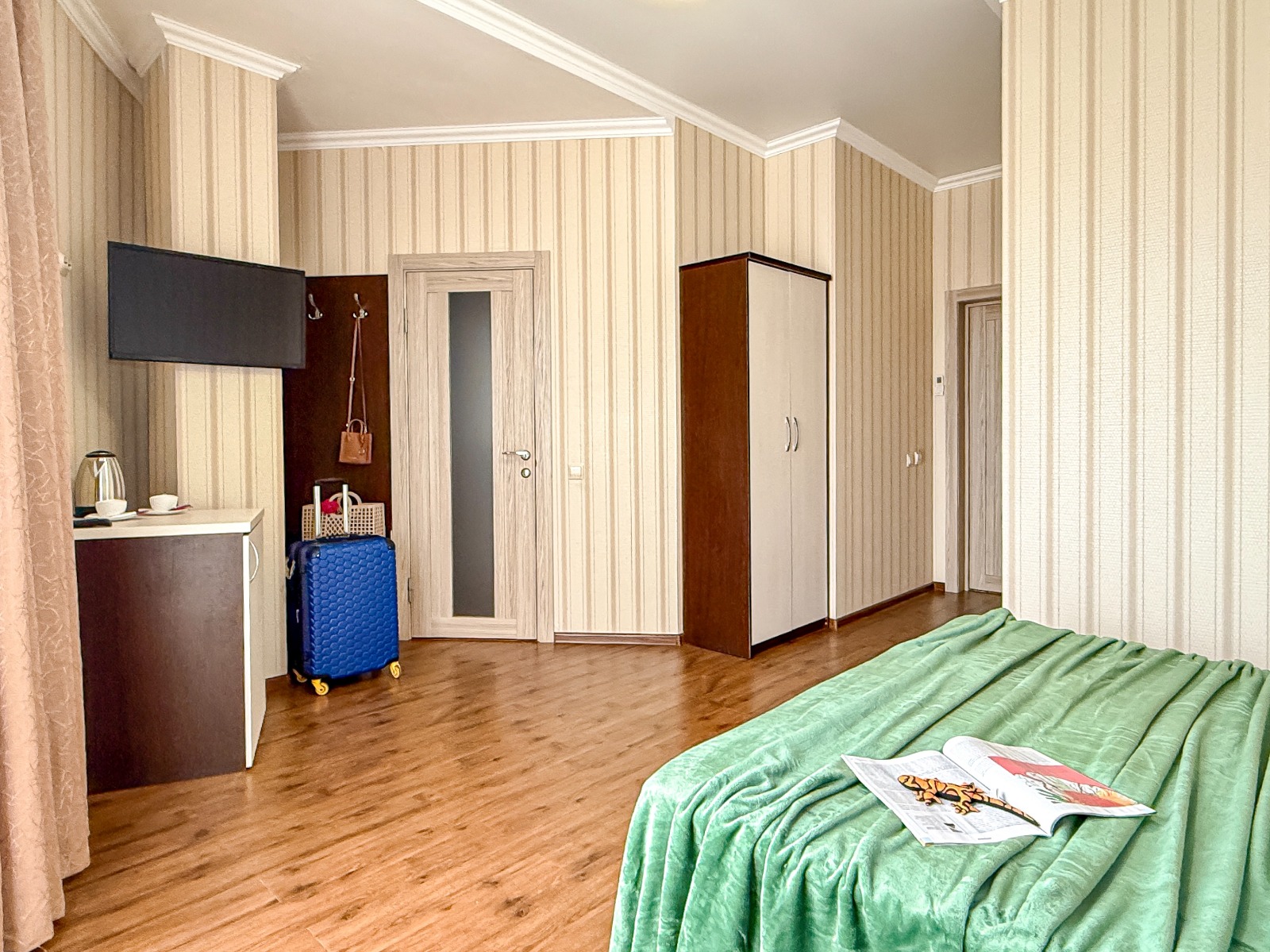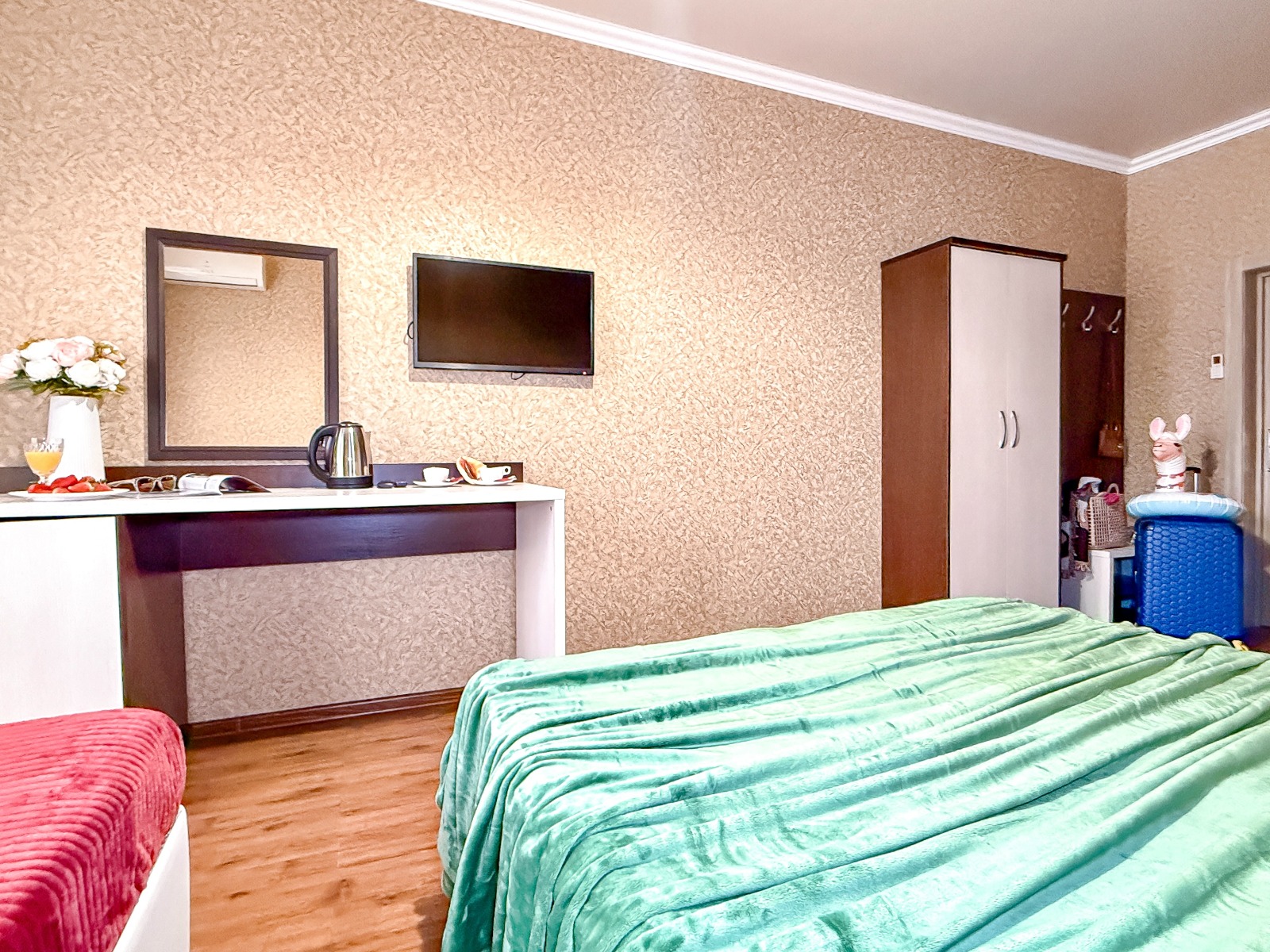 - Современные оборудованные номера: кондиционер, холодильник, телевизор, душ, c/у, электрический чайник;