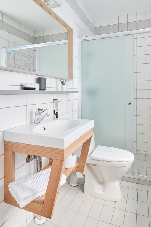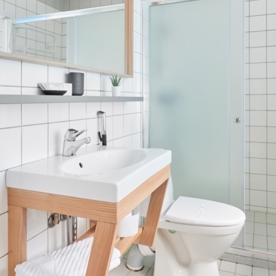 - Туалетная комната совмещенная : душ, туалет.